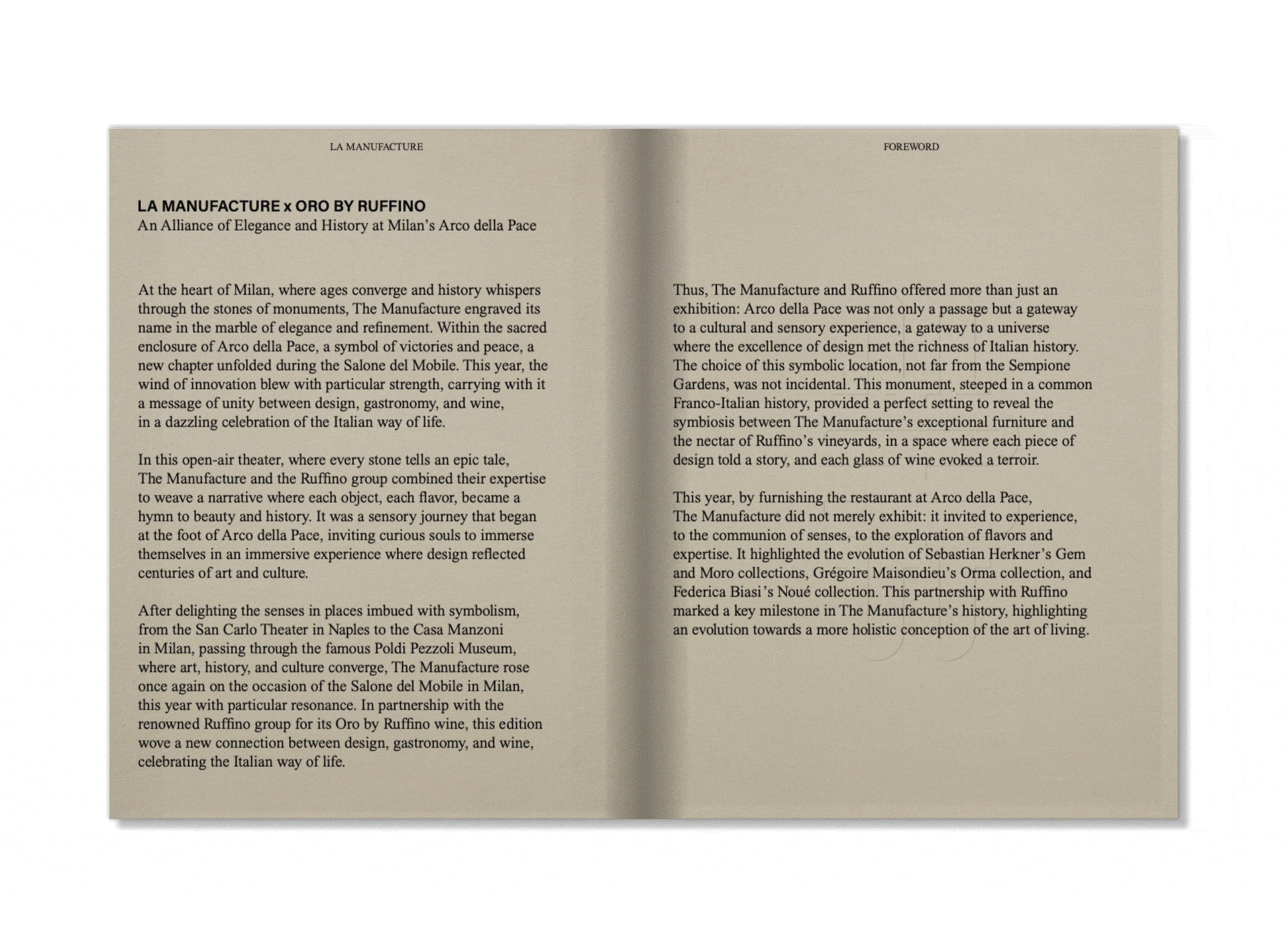 In this digital publication you will find a curated compendium encompassing all of our latest collections, presented during Milan Design Week 2024 within the beautiful setting of the Arco della Pace. At each turn of the page, you will delve into the stories behind each piece, the materials and inspirations that the brilliant minds of our international designers have brought to life by lending their creative genius to our collections.