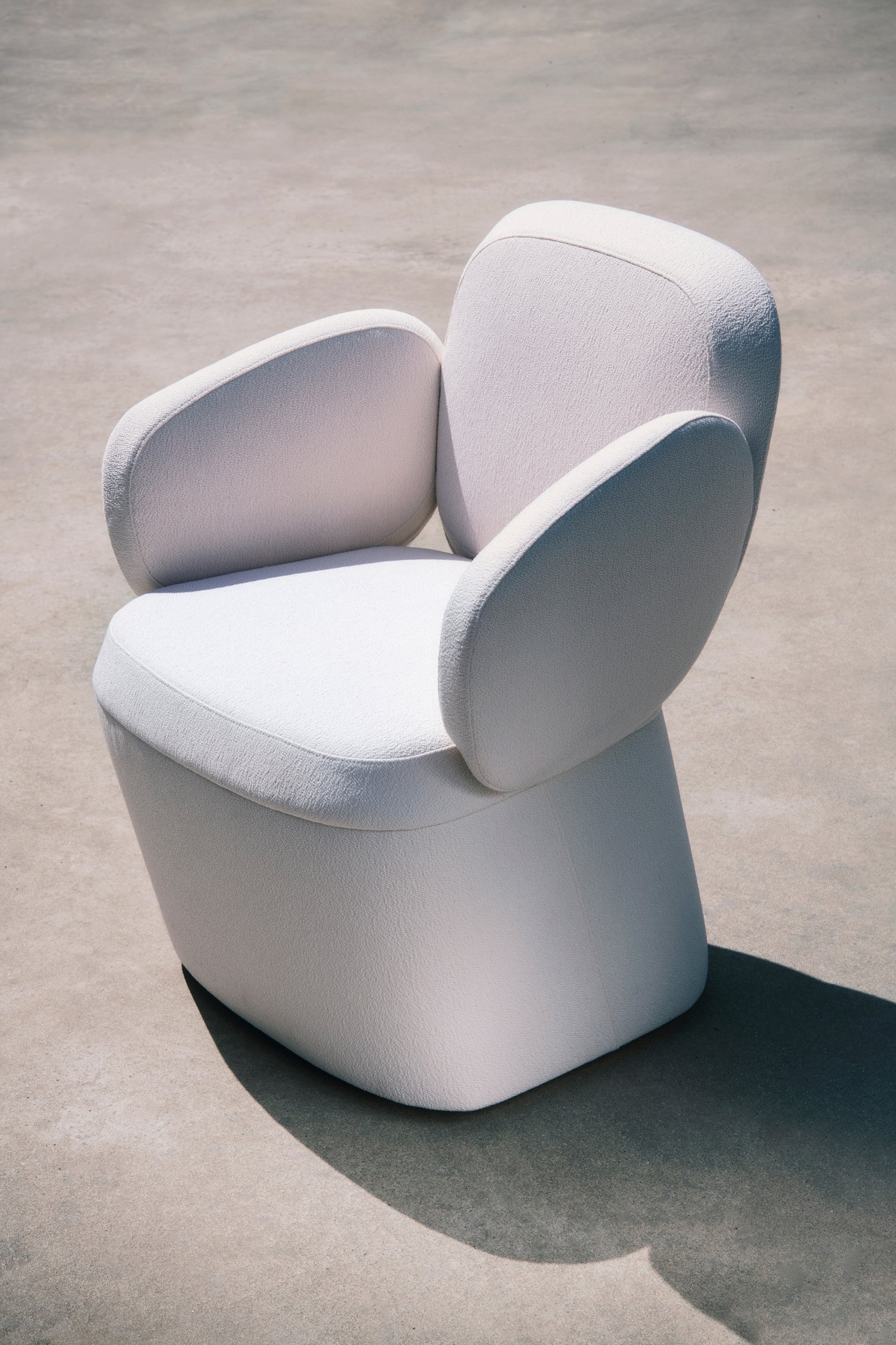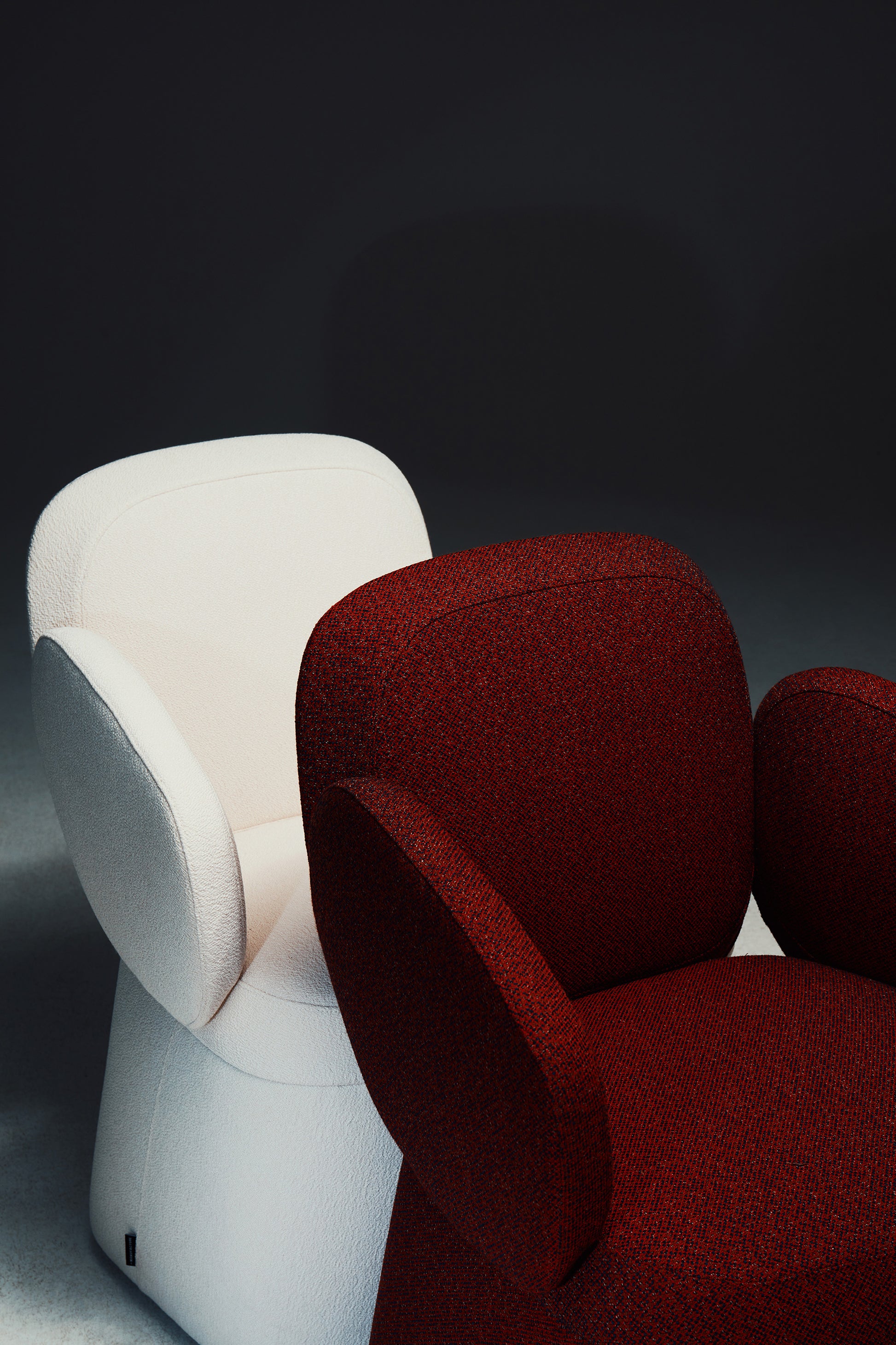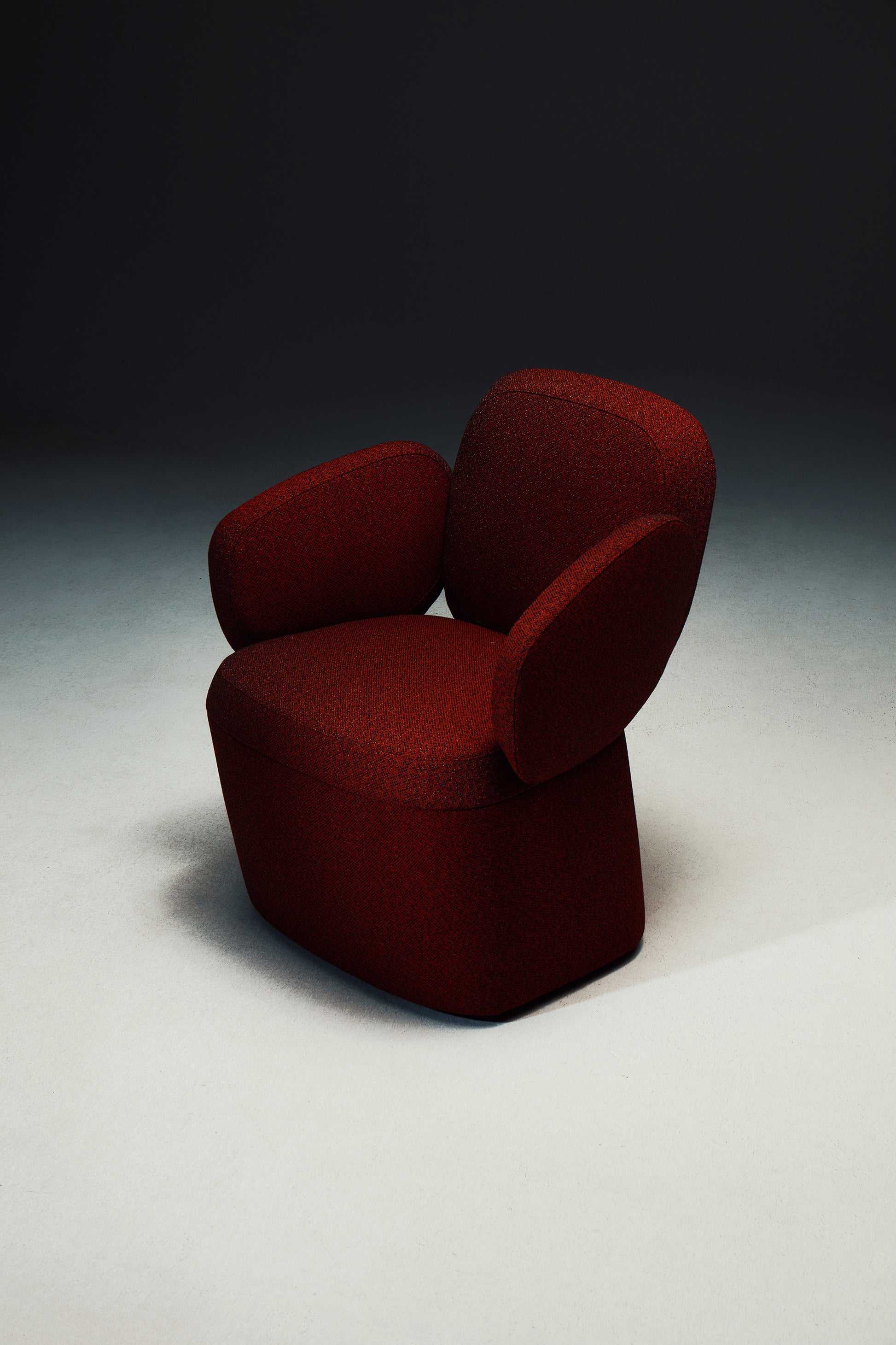 Sassi owes its Italian name and its shape to pebbles, stones whose rounded shape provided its main inspiration. The chair’s back and armrests appear to float freely, barely touching each other, like perfectly smooth polished stones.